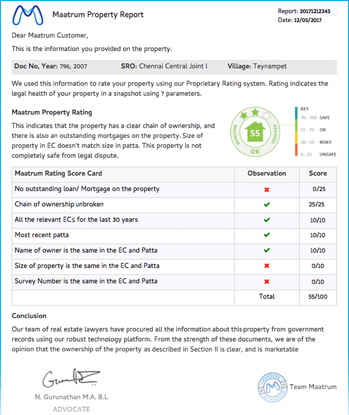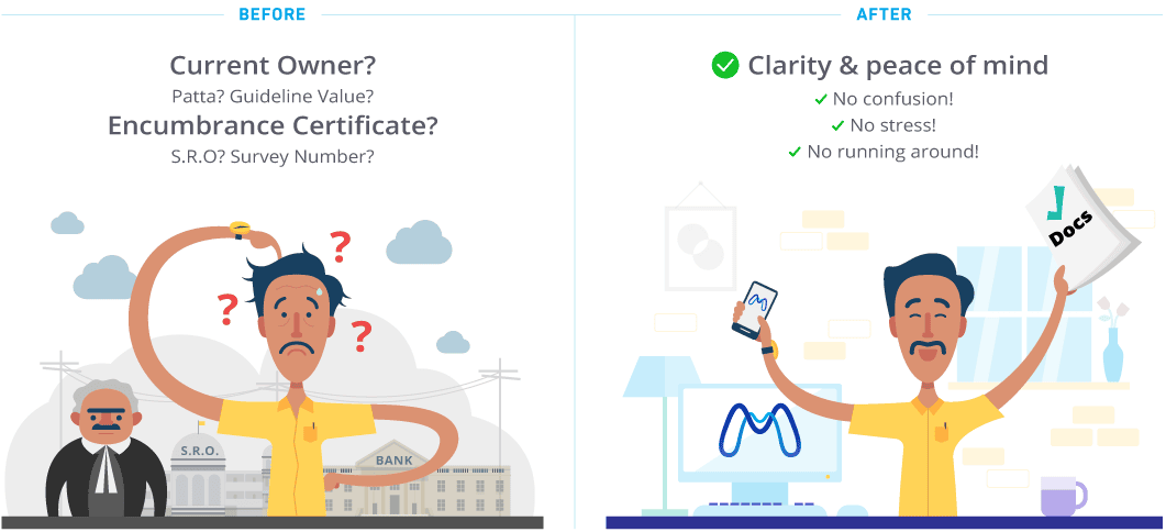Get all relevant encumbrance certificates for 30 years, the patta and a simplified legal summary.